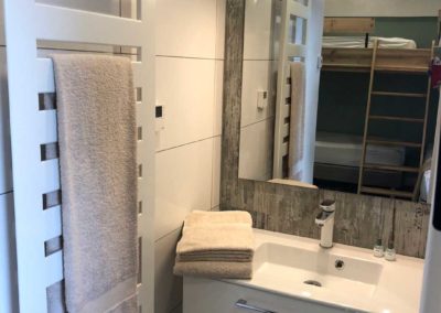 -1 chambre, 4 lits en 90, matelas qualité hôtelière, salle d’eau privative, placard de rangement, TV 80cm