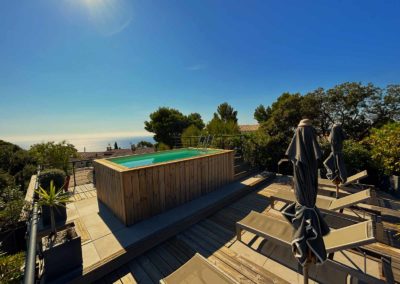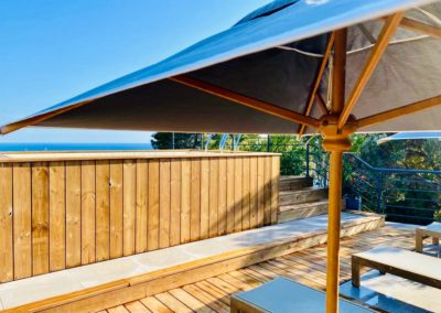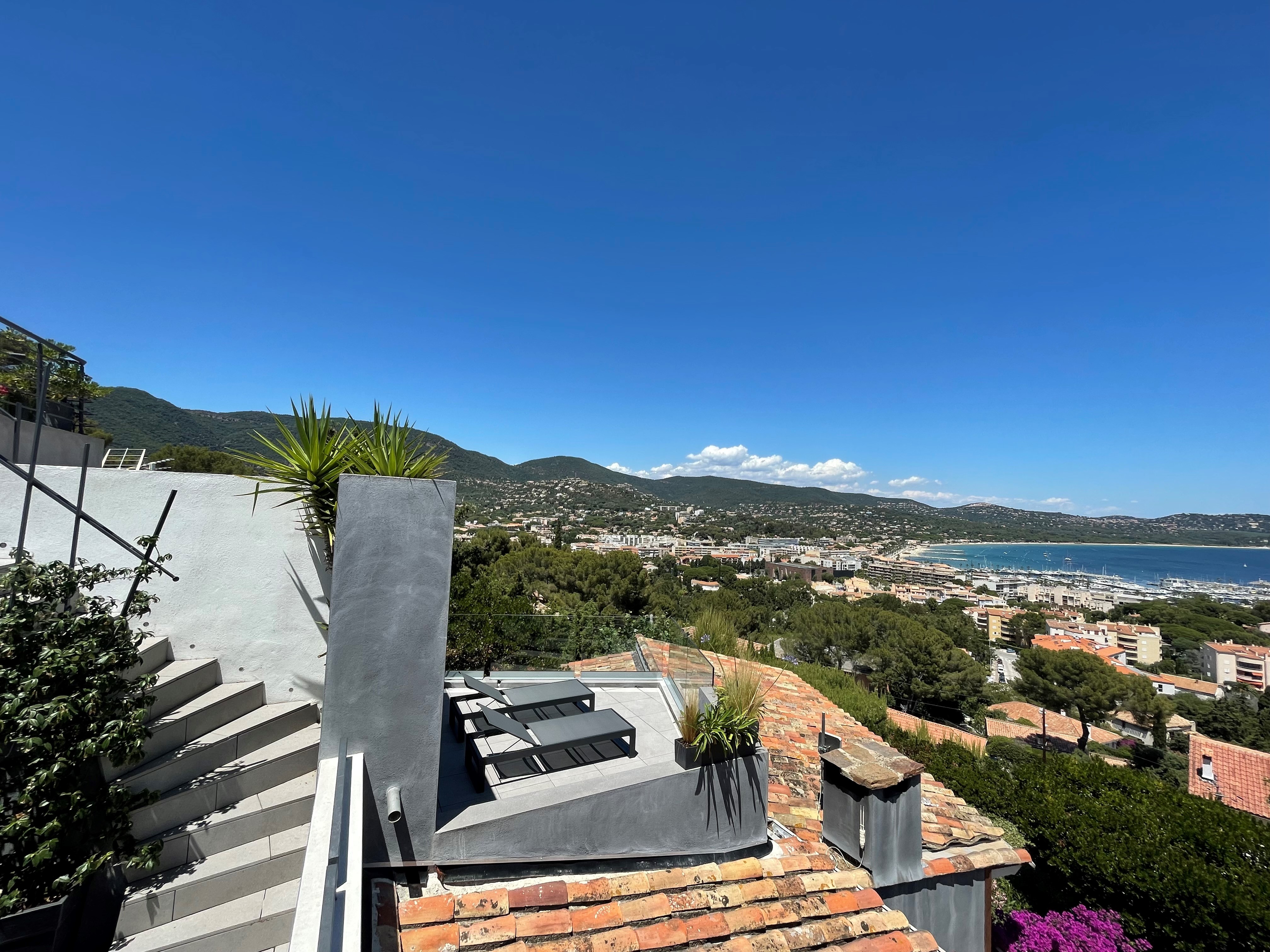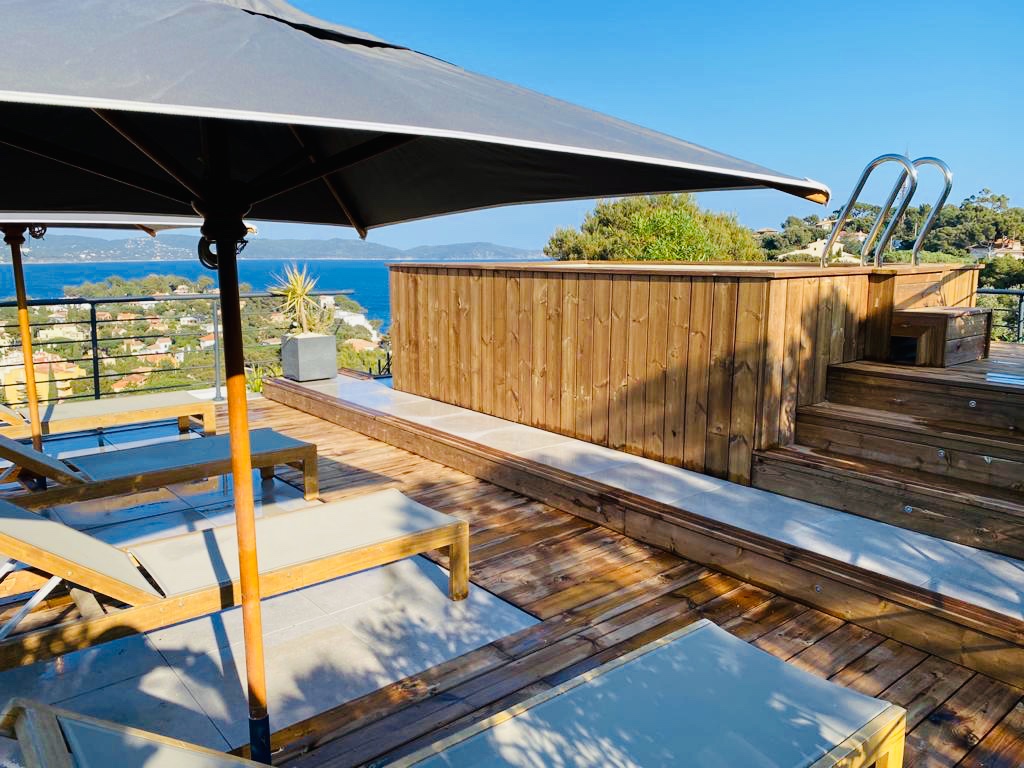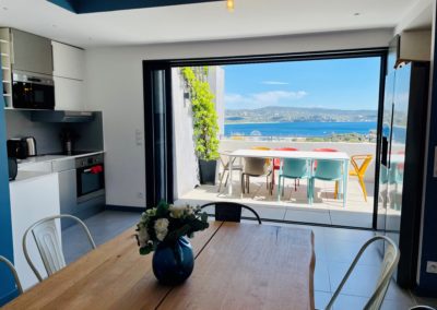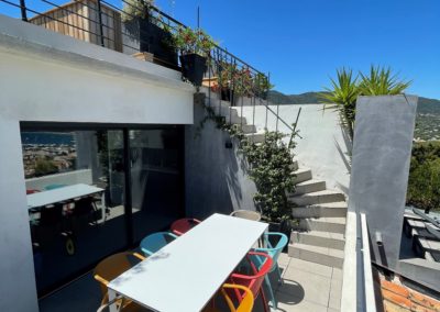Création contemporaine (2019) de 90m² composait d’une pièce à vivre avec cuisine toute équipée, salon, salle à manger, 3 chambres avec salles d’eau privatives, 1 WC, 3 terrasses avec vue mer, 1 solarium avec vue panoramique 360°.